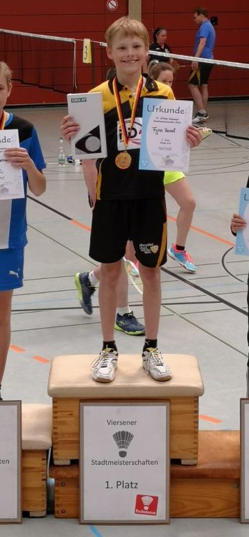 Mika´s Bruder, Fynn Hennl, konnte sich in der Konkurrenz Einzel U13 die Goldmedaille erspielen.