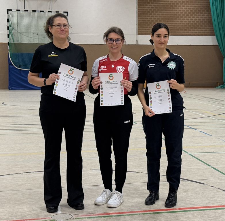 Auch bei den Recurve Damen ging der Titel an unseren Verein: Fiona Werner holte hier den ersten Platz mit neune Ringen Vorsprung auf die Konkurrenz aus Düsseldorf.